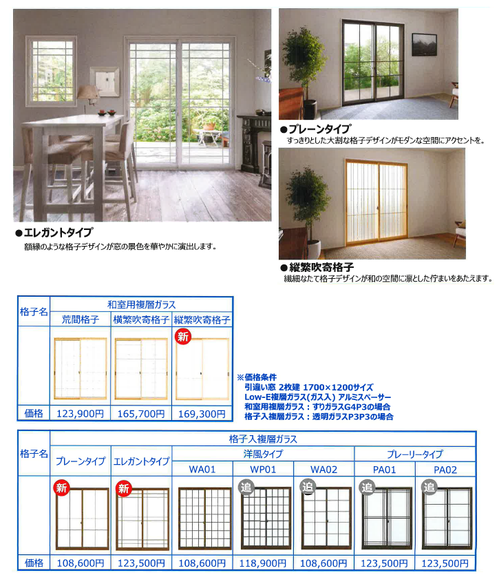 プラマードなら格子入りデザインの曇りガラスでもすべて、アルゴンガス入りでSグレード補助金対象です!