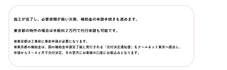 工事日までに補助金申請に必要な書類をメールまたは郵送でお送り頂きます。
